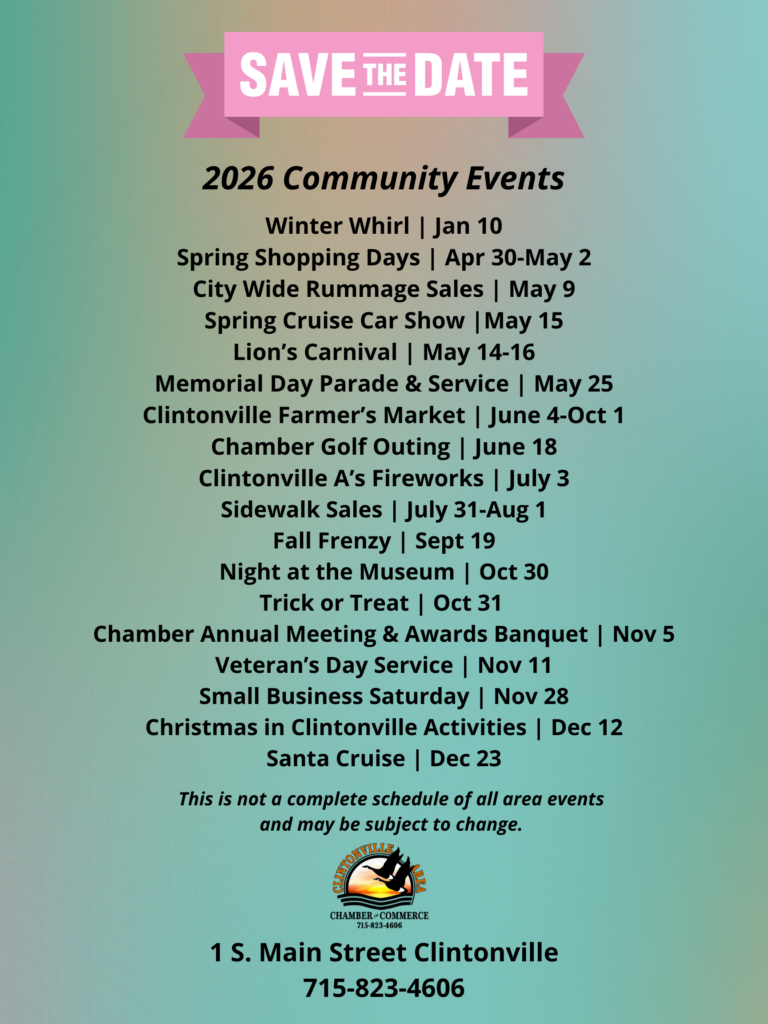 Discover Clintonville is our full tourism guide that shares the great businesses, parks, events, history and more of Clintonville. For a copy of your own please visit the Clintonville Area Chamber of Commerce at 1 S. Main Street or at our 24/7 Information Hut at Fox Valley Technical College Campus 525 S. Main Street, Clintonville. Click here for the digital version!